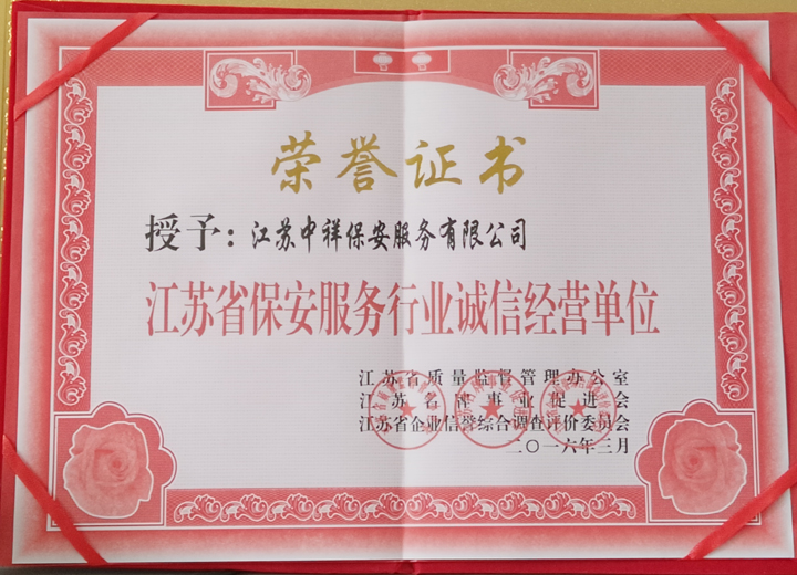 江蘇中祥保安服務有限公司是經(jīng)江蘇省公安局廳,市公安局批準的具有合法資質(zhì)的保安服務公司,屬上海智成旗下子公司,我司從2003年以來至今已有十幾年的管理經(jīng)驗,多年來一直專業(yè)從事企業(yè)安全外包、大型活動現(xiàn)場保衛(wèi)、長短期保鏢、緊急危機處理、技術防范等全面安全事務管理服務,保潔服務,物業(yè)管理服務,取得了驕人的業(yè)績,并受到客戶的高度贊揚。